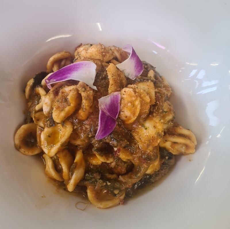 Paccheri alle delizie di marePaccheri aux délices de mer, selon arrivage | 35.00 |